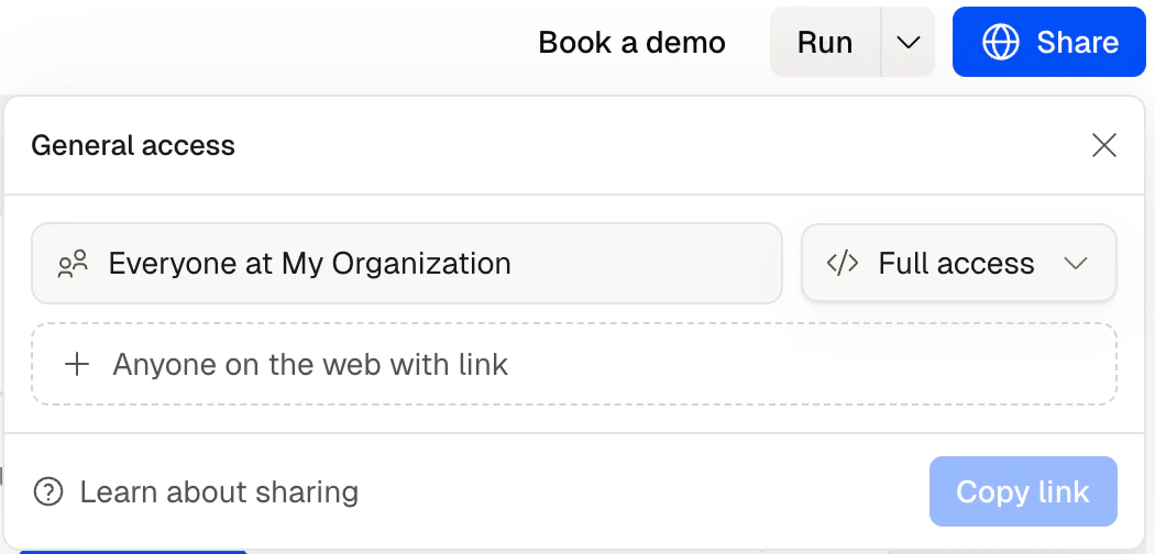 - Give run-only access by default. Most people who use a workflow don’t need to edit it — run access is enough.