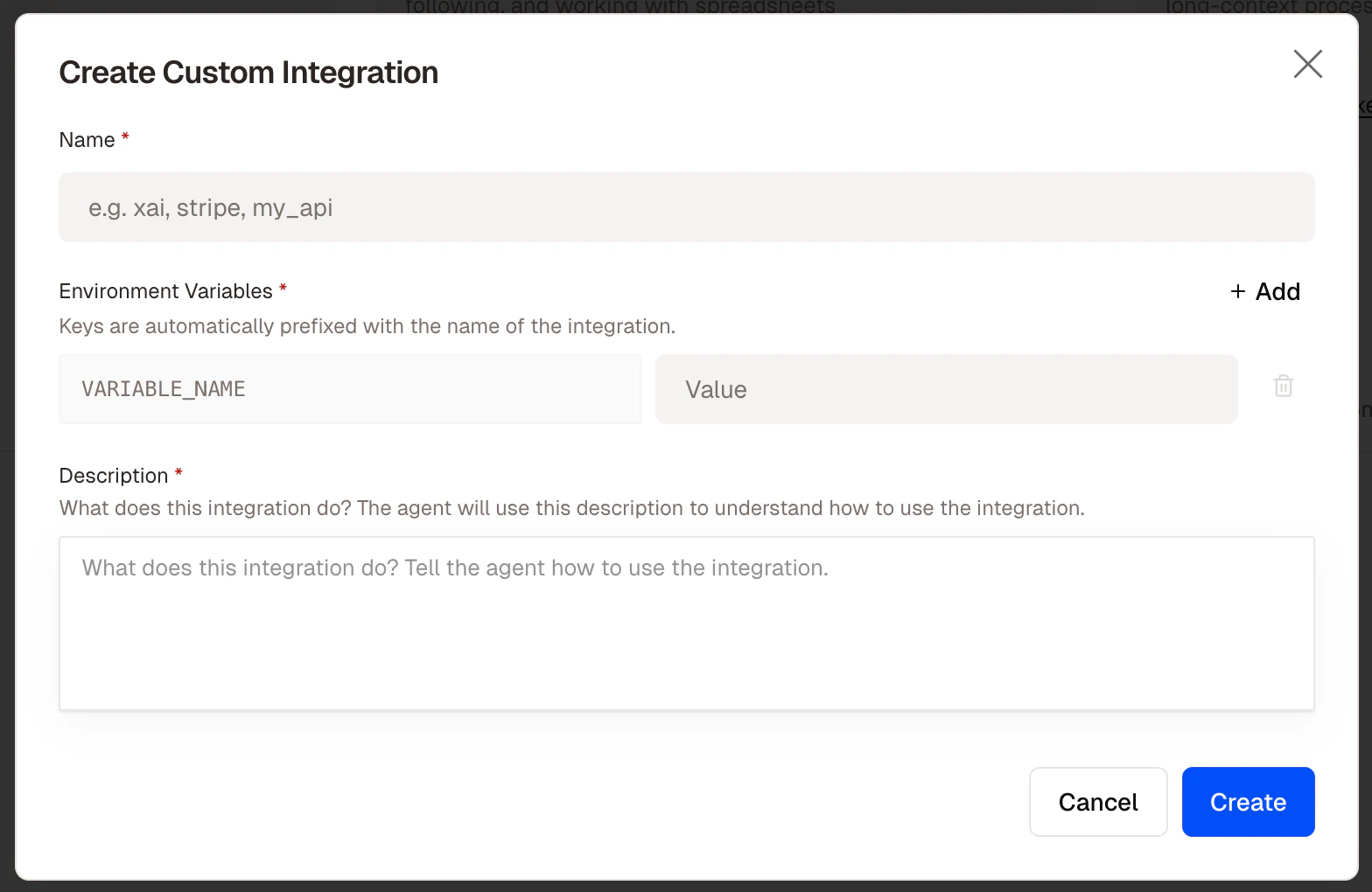 @land_registryand@internal_dmsread naturally in step descriptions.@api1does not. - Add multiple credentials where needed. If an API requires both an API key and a secret, add both as separate environment variables under the same connector.